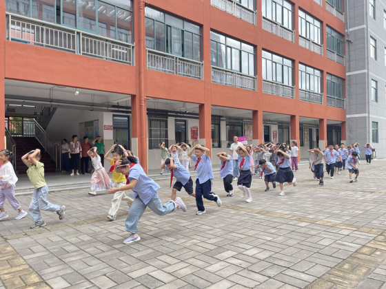 为增强少先队员的光荣感与使命感,厚植爱党爱国情怀。10月13日上午八时,该校在操场隆重举行了以“强国复兴有我,争当时代好少年”为主题的2025年少先队建队纪念日活动暨第二批新队员入队仪式。仪式在激昂的《出旗曲》中拉开序幕,护旗手迈着铿锵步伐护送队旗入场,全体师生肃立行礼。随后,大队辅导员徐德萍老师宣读新队员名单,192名二年级学生光荣加入中国少年先锋队。五年级优秀队员代表为新队员佩戴红领巾,并互敬队礼,传递责任与使命。在鲜艳的队旗下,大队长张茁原同学高举右拳带领新队员庄严宣誓。仪式中,新队员代表孟佳怡同学发