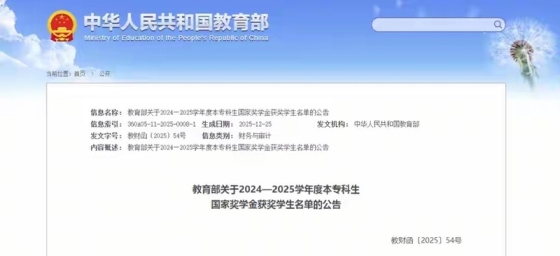 近日,教育部官网发布2024至2025学年度本专科生国家奖学金获奖名单,六安多名学生榜上有名。教育部关于2024——2025学年度本专科生国家奖学金获奖学生名单的公告根据《财政部 教育部 人力资源社会保障部 退役军人部 中央军委国防动员部关于印发〈学生资助资金管理办法〉的通知》(财教〔2021〕310号)、《教育部 财政部关于印发〈本专科生国家奖学金评审办法〉的通知》(教财函〔2019〕105号)和《关于调整高等教育阶段和高中阶段国家奖助学金政策的通知》(财教〔2024〕181号)的相关规定,教育部、财政部联合成立了国家奖学金评审领导小