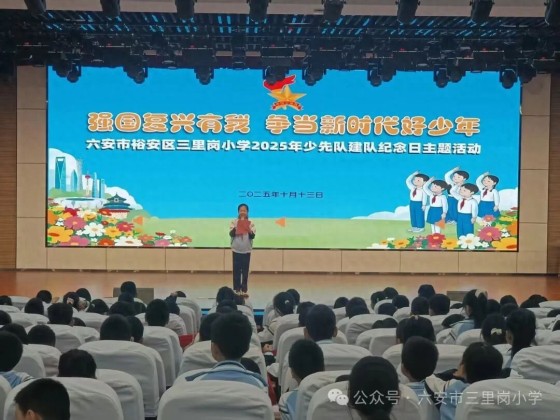 10月13日,六安市裕安区三里岗小学隆重举行少先队员入队仪式,476名二年级学生加入中国少年先锋队,正式成为一名光荣的少先队员。 仪式在庄严的出旗曲中拉开序幕,全体师生肃立致敬。 随后,大队长宣读新队员名单,高年级的老队员们为新队员佩戴鲜艳的红领巾。当象征着责任与荣耀的红领巾在胸前飘扬,新队员们眼中满是激动与自豪,纷纷挺直腰板,用最标准的姿势向老队员回敬队礼。 “我是中国少年先锋队队员,我在队旗下宣誓......”在大队委大队长的领誓下,新队员们高举右拳,以稚嫩却坚定的声音庄严宣誓。德育处主任李先伟