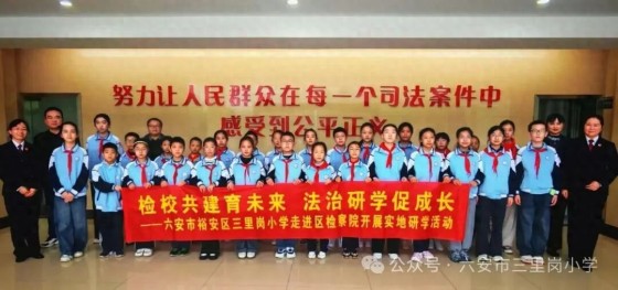 为增强学生法治意识,护航少年儿童健康成长,10 月 30 日,六安市裕安区三里岗小学三十余名师生化身 “小小法治观察员”,走进六安市裕安区检察院开展实地研学活动。初探检察院,揭秘法律世界 初入检察院的同学们充满好奇,在检察院政治部刘主任的带领下,大家参观了 12309 检察服务中心。 刘主任向同学们详细介绍了检察机关的日常运作模式和检察工作职责,让大家对检察院的工作有了清晰认知。沉浸式体验听证流程 在听证室里,师生认真听取工作人员对听证流程和法律程序的讲解,亲眼目睹庄严的听证环境,深切感受到法律的威严与公